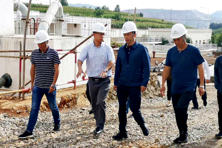 王賓一行實地查看了魯甸卯家灣供水項目新建水廠工程建設進展、安置區應急供水保障及魯甸縣老水廠整合推進情況。在靖安供水項目工程建設現場,查看了凈水廠應急供水運行、水量、水質保障以及扶貧搬遷安置供水保障服務情況,并對現場一些外觀質量瑕疵提出了改進建議。在靖安污水處理廠項目,對工程建設推進情況、現場安全文明施工狀況、安置區生活污水應急接納處理情況進行了深入了解。隨后來到靖安異地扶貧搬遷安置區,觀摩項目沙盤,了解了新區發展規劃與工程建設進展、移民安置等情況。